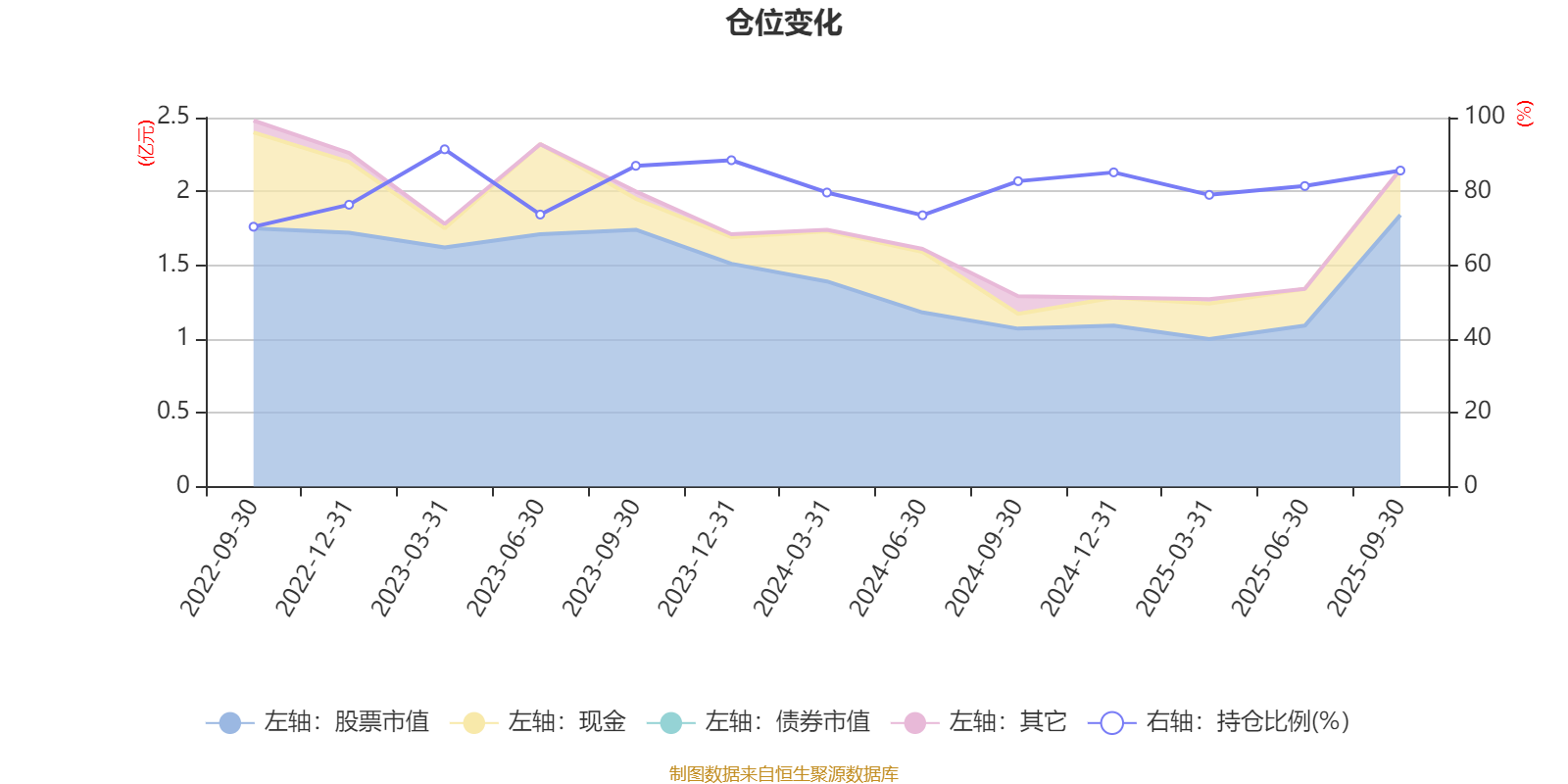 据定期报告数据统计,近三年平均股票仓位为82.02%,同类平均为85.66%。2023年一季度末基金达到91.41%的最高仓位,2022年三季度末最低,为70.42%。