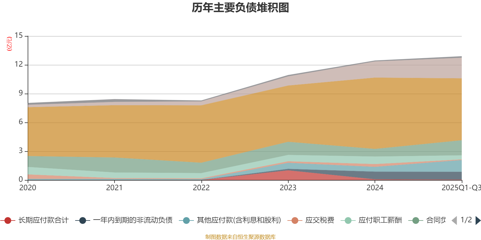 负债重大变化方面,截至2025年三季度末,公司应付票据及应付账款较上年末减少13.09%,占公司总资产比重下降3.12个百分点;合同负债较上年末增加96.73%,占公司总资产比重上升2.49个百分点;其他应付款(含利息和股利)较上年末增加147.24%,占公司总资产比重上升2.37个百分点;短期借款较上年末增加26.91%,占公司总资产比重上升1.48个百分点。