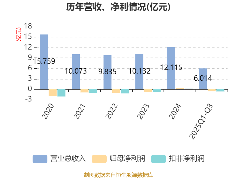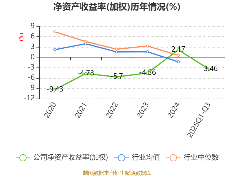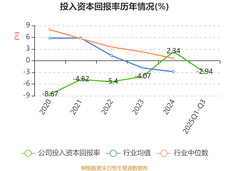 盈利能力方面, 2025年前三季度公司加权平均净资产收益率为-3.46%,同比下降2.3个百分点。公司2025年前三季度投入资本回报率为-2.94%,较上年同期下降2.02个百分点。