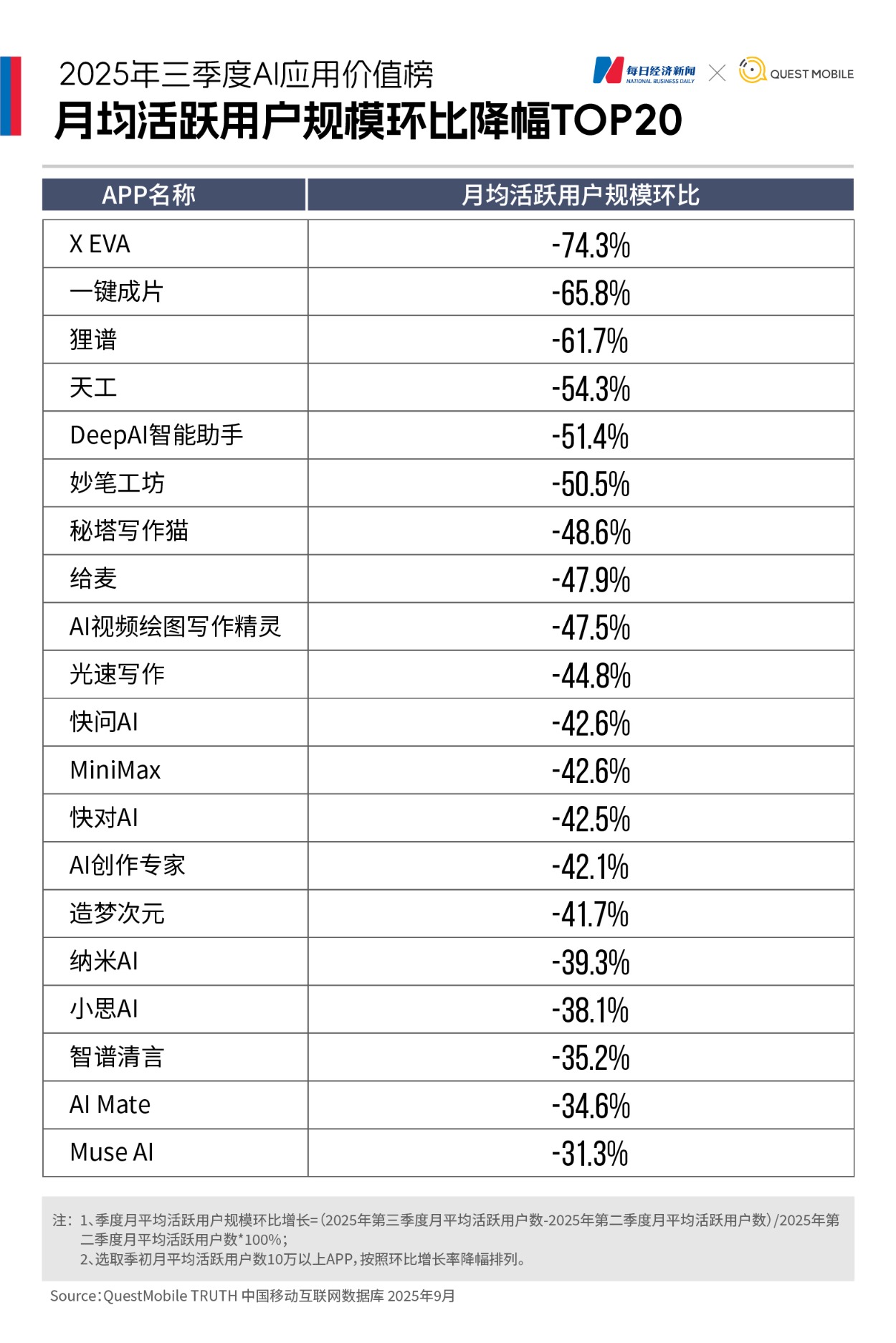 MiniMax:月活环比下降42.6%,月均下载量环比骤降43.3%。