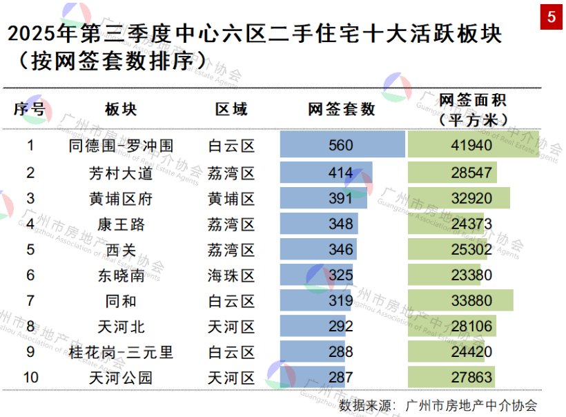 此外,中心六区板块多个板块网签套数同比增长,其中因旧改推进,拆迁户购房需求快速释放,带动芳村大道板块巨幅增长80.79%;桂花岗-三元里、康王路、同德围-罗冲围和天河公园等板块也较为活跃。