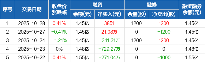 好当家:融资净买入3851元,融资余额1.45亿元(10-28)