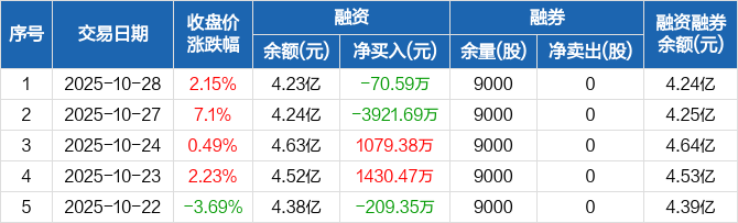 华锐精密:融资净偿还70.59万元,融资余额4.23亿元(10-28)