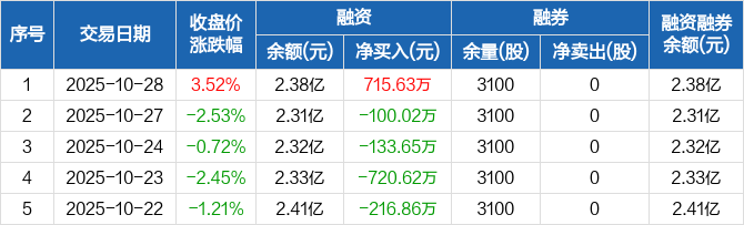 珠江股份:融资净买入715.63万元,融资余额2.38亿元(10-28)