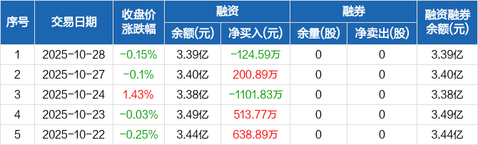 力芯微:融资净偿还124.59万元,融资余额3.39亿元(10-28)