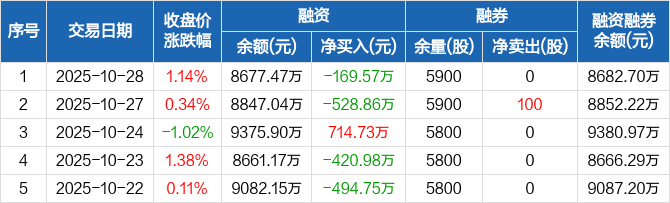 青岛港:融资净偿还169.57万元,融资余额8677.47万元(10-28)