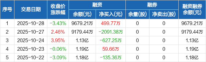 佳驰科技:融资净买入499.77万元,融资余额9679.21万元(10-28)