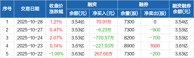 贵航股份:融资净买入70.91万元,融资余额3.54亿元(10-28)