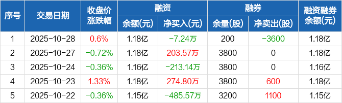渝三峡A:融资净偿还7.24万元,融资余额1.18亿元(10-28)