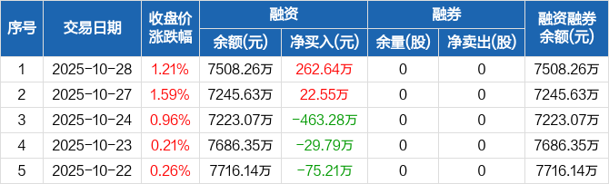 科力装备:融资净买入262.64万元,融资余额7508.26万元(10-28)