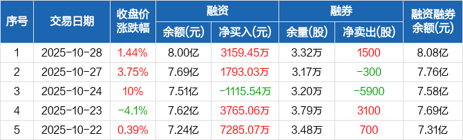 深南电路:融资净买入3159.45万元,融资余额8亿元(10-28)