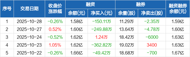 广东建工融资融券信息显示,2025年10月28日融资净偿还150.11万元;融资余额1.58亿元,较前一日下降0.94%。