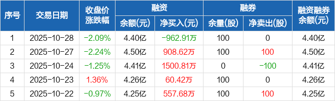 凯龙股份:融资净偿还962.91万元,融资余额4.4亿元(10-28)