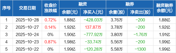 摩恩电气:融资净偿还428.03万元,融资余额1.88亿元(10-28)