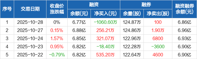 电投产融:融资净偿还1060.6万元,融资余额6.77亿元(10-28)