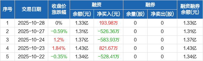 山东章鼓:融资净买入193.98万元,融资余额1.33亿元(10-28)