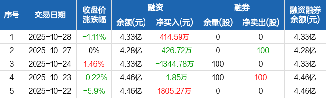英威腾:融资净买入414.59万元,融资余额4.33亿元(10-28)