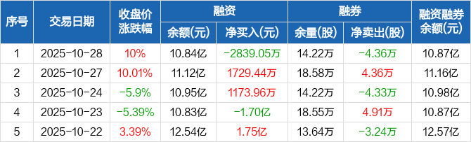 安泰科技:融资净偿还2839.05万元,融资余额10.84亿元(10-28)