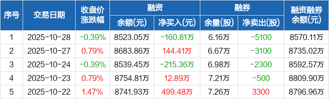 华润材料:融资净偿还160.81万元,融资余额8523.05万元(10-28)