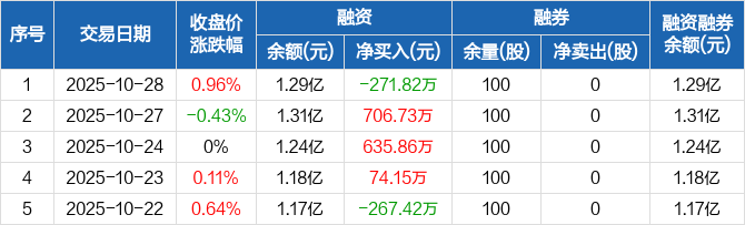 金埔园林:融资净偿还271.82万元,融资余额1.29亿元(10-28)