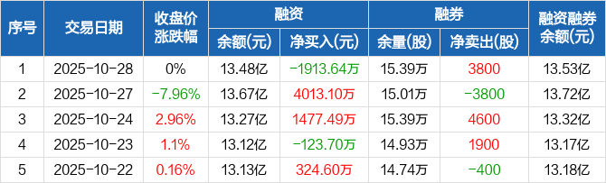 赢合科技:融资净偿还1913.64万元,融资余额13.48亿元(10-28)