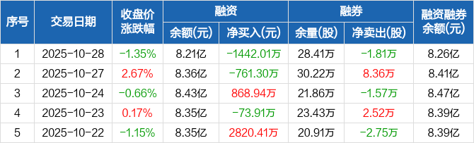 温氏股份:融资净偿还1442.01万元,融资余额8.21亿元(10-28)