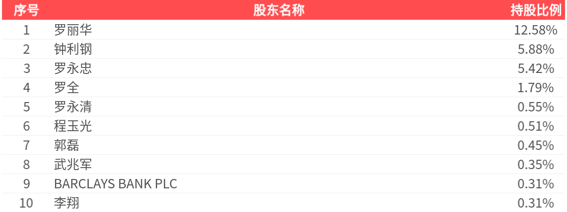 公司股东户数为13.88万户,前十大股东持股数量为1.36亿股,占总股本比例为28.15%,前十大股东持股情况如下: