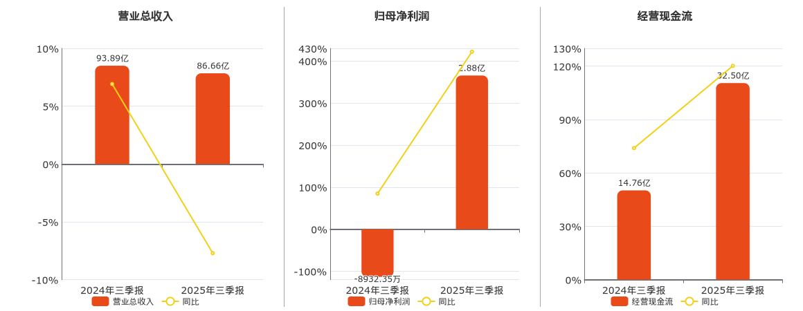 豫能控股(001896.SZ):2025年三季报净利润为2.88亿元,同比扭亏为盈