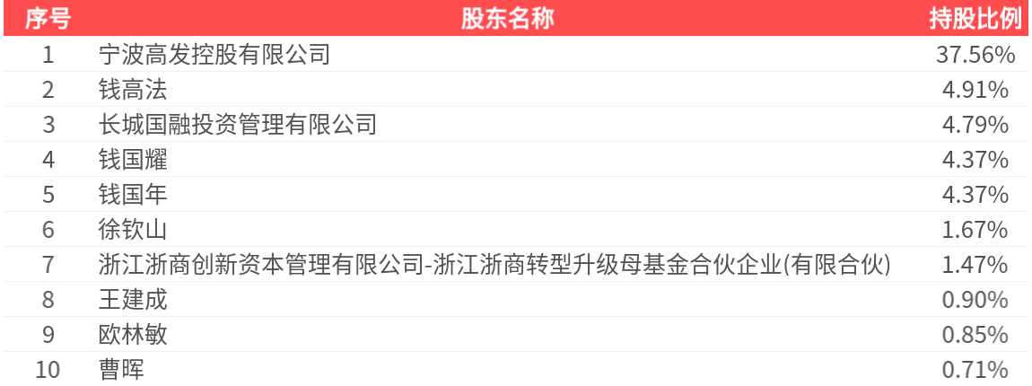 公司股东户数为1.75万户,前十大股东持股数量为1.37亿股,占总股本比例为61.59%,前十大股东持股情况如下:
