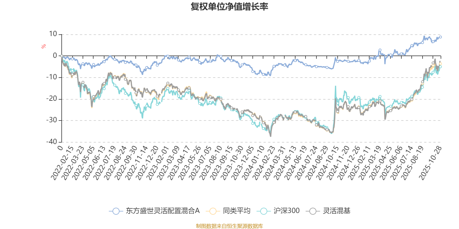 截至10月28日,东方盛世灵活配置混合A近三个月复权单位净值增长率为2.88%,位于同类可比基金1031/1287;近半年复权单位净值增长率为8.39%,位于同类可比基金1059/1287;近一年复权单位净值增长率为11.26%,位于同类可比基金891/1287;近三年复权单位净值增长率为18.62%,位于同类可比基金584/1286。