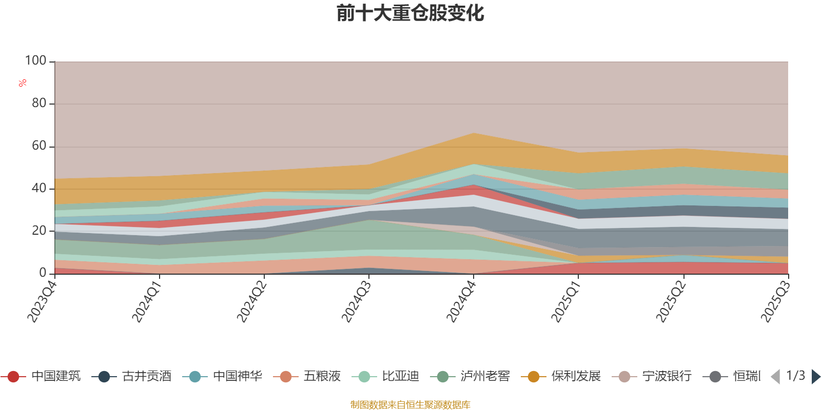 截至2025年三季度末,基金十大重仓股分别是贵州茅台、招商银行、中国平安、农业银行、恒瑞医药、中国建筑、工商银行、建设银行、兴业银行、保利发展。