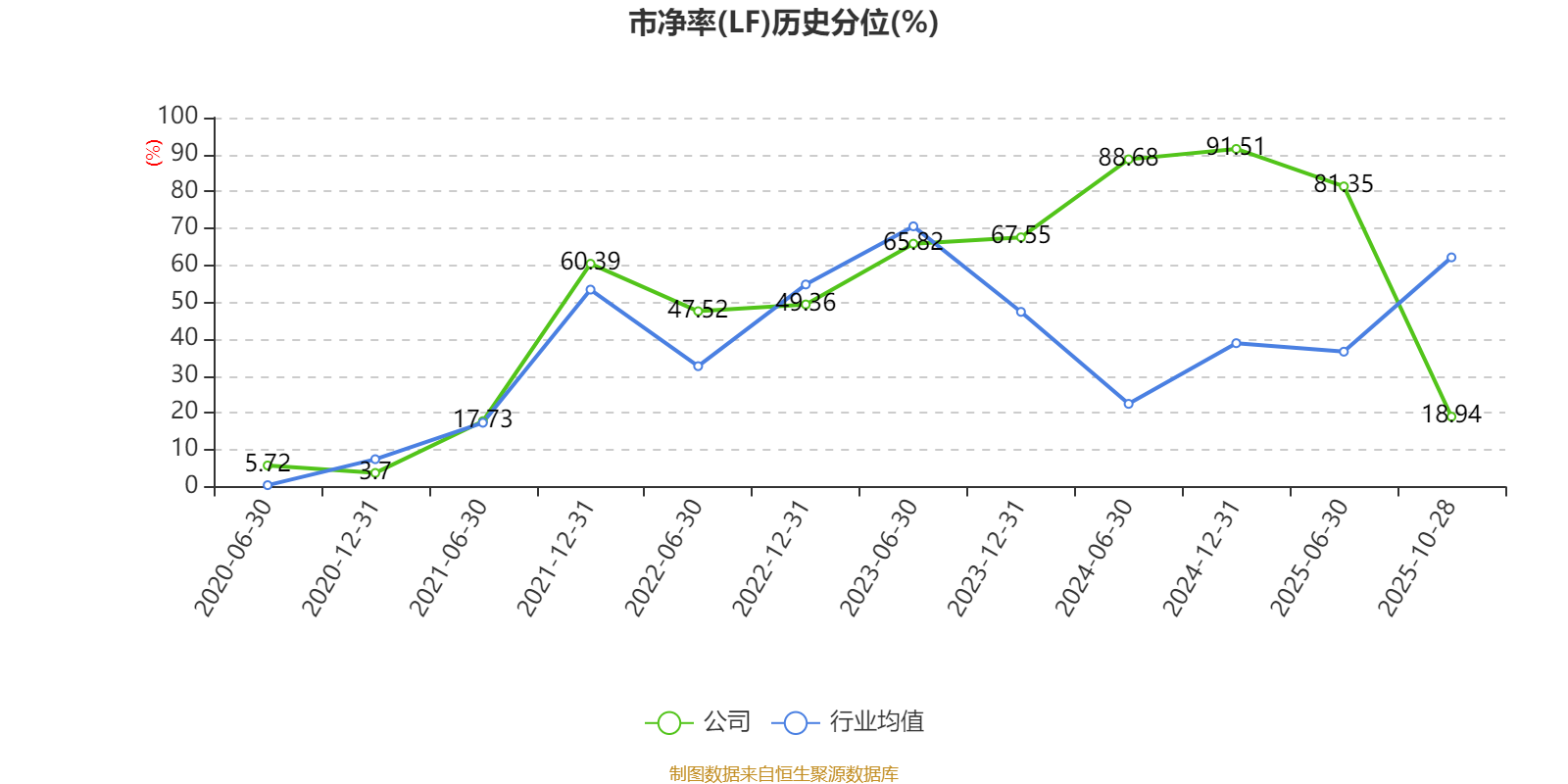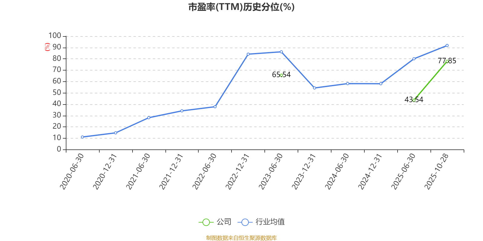 市盈率、市净率为负时,不显示当期分位数,会导致折线图中断。