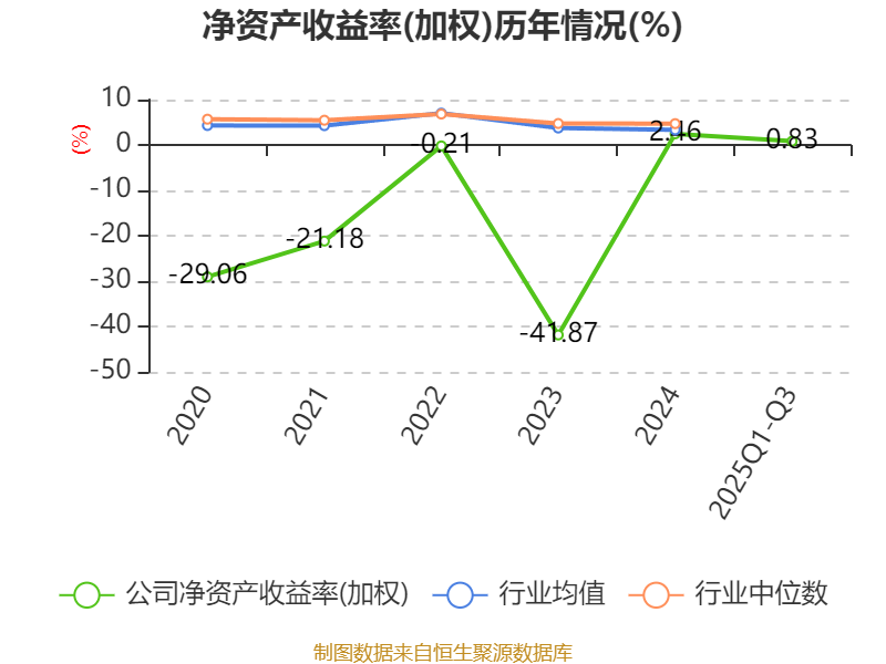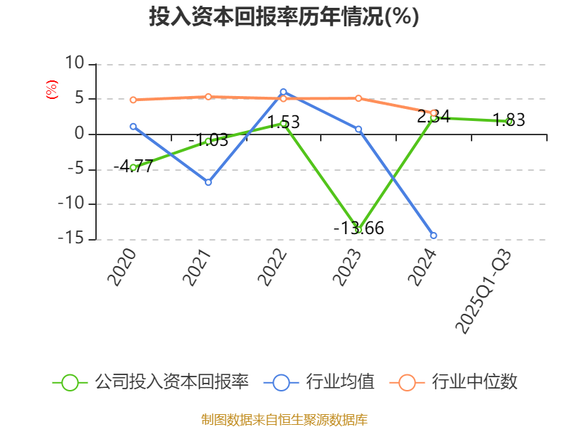 盈利能力方面, 2025年前三季度公司加权平均净资产收益率为0.83%,同比下降4.59个百分点。公司2025年前三季度投入资本回报率为1.83%,较上年同期下降0.7个百分点。