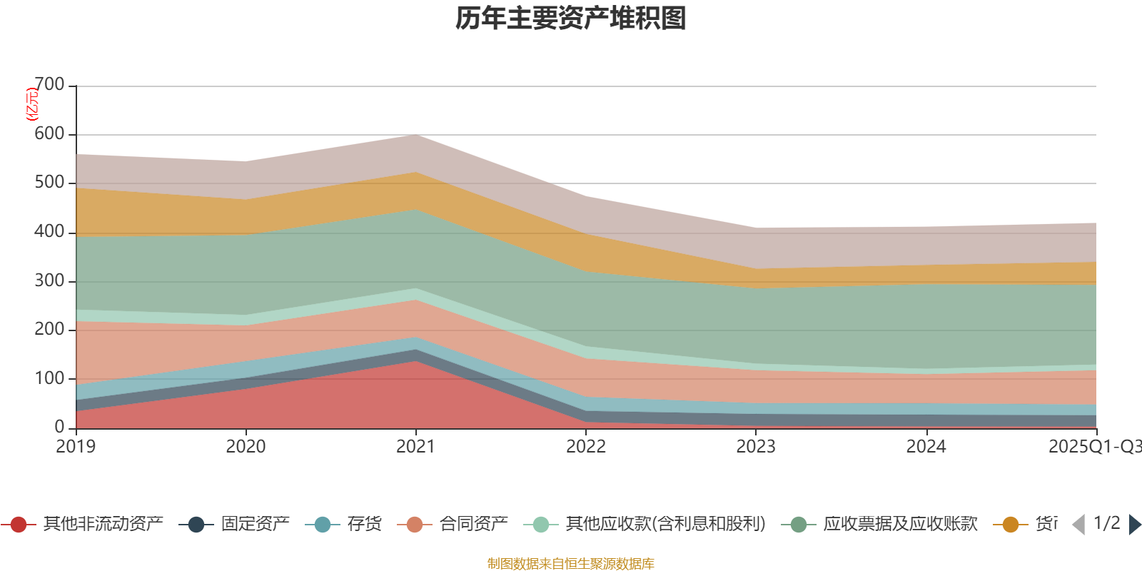 资产重大变化方面,截至2025年三季度末,公司应收票据及应收账款较上年末减少5.88%,占公司总资产比重下降3.19个百分点;合同资产较上年末增加17.57%,占公司总资产比重上升2.22个百分点;货币资金较上年末增加19.66%,占公司总资产比重上升1.68个百分点;其他流动资产较上年末增加44.86%,占公司总资产比重上升0.82个百分点。