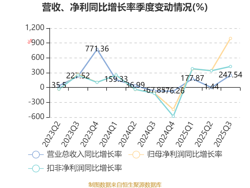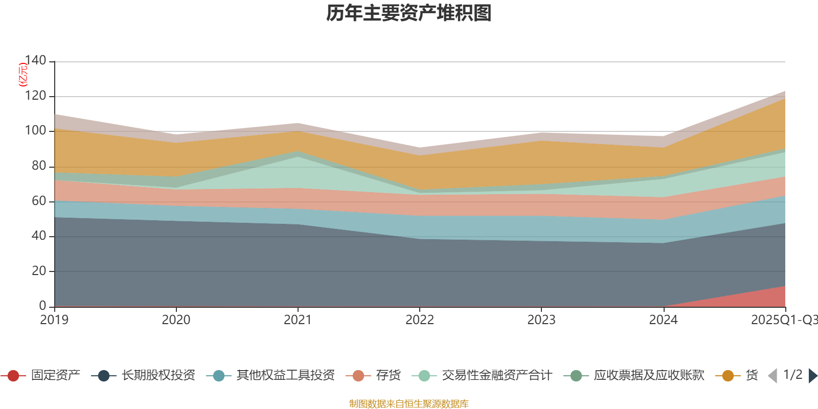 资产重大变化方面,截至2025年三季度末,公司固定资产较上年末增加4692.11%,占公司总资产比重上升9.32个百分点;长期股权投资较上年末减少0.38%,占公司总资产比重下降7.88个百分点;货币资金较上年末增加76.27%,占公司总资产比重上升6.56个百分点;存货较上年末减少15.88%,占公司总资产比重下降4.43个百分点。