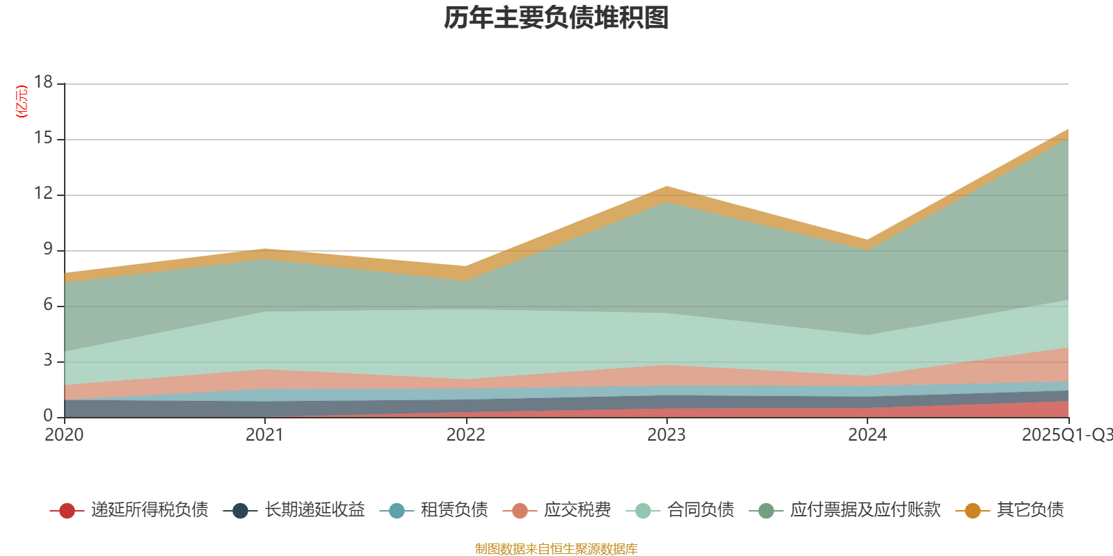 负债重大变化方面,截至2025年三季度末,公司应付票据及应付账款较上年末增加90.43%,占公司总资产比重上升2.38个百分点;应交税费较上年末增加240.91%,占公司总资产比重上升0.95个百分点;租赁负债较上年末减少16.81%,占公司总资产比重下降0.2个百分点;递延所得税负债较上年末增加75.54%,占公司总资产比重上升0.19个百分点。