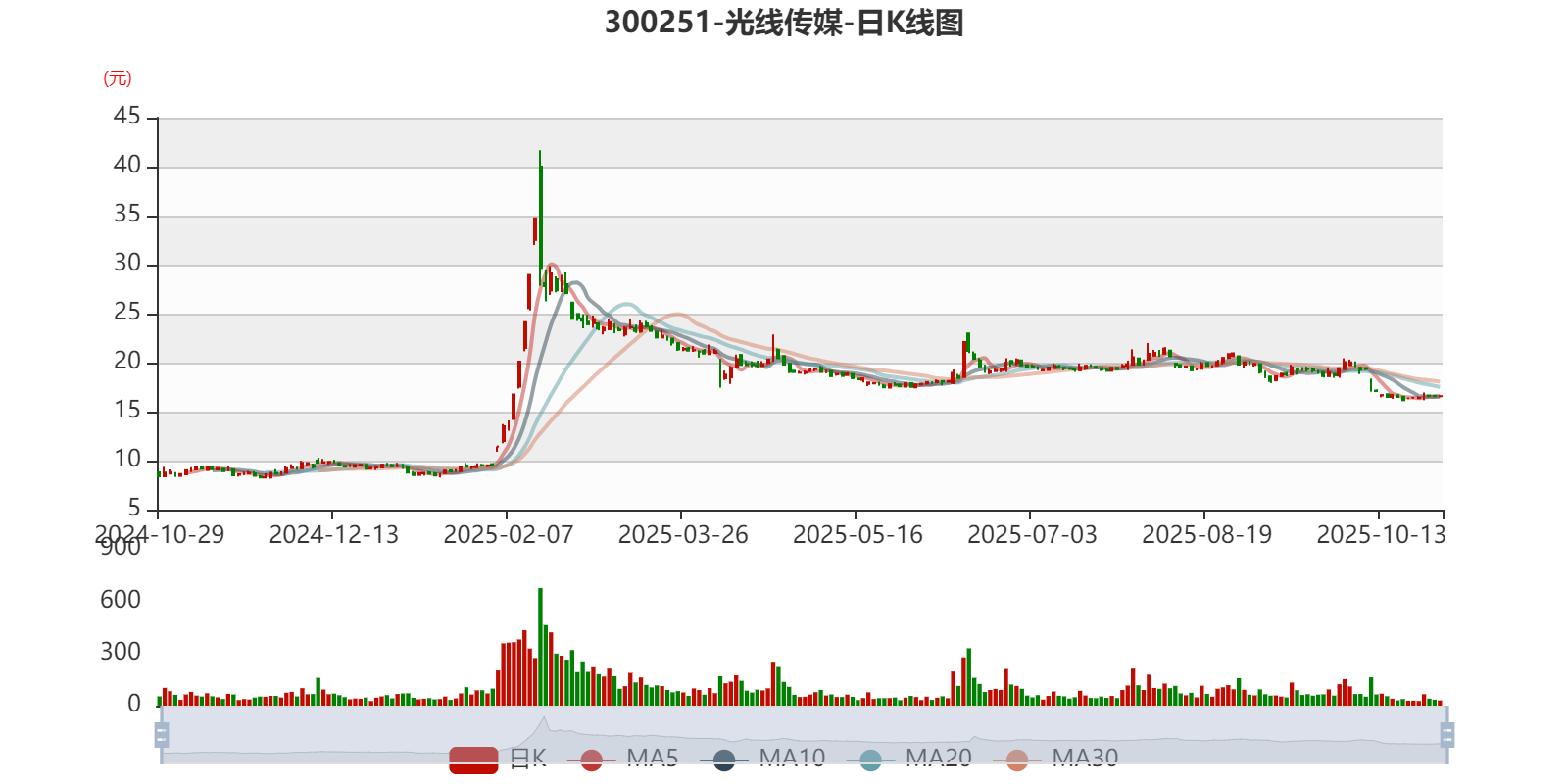 三季报显示,2025年三季度末的公司十大流通股东中,持股最多的为光线控股有限公司,占比37.399%。在具体持股比例上,光线控股有限公司、上海汉涛信息咨询有限公司、杜英莲、香港中央结算有限公司、华夏中证动漫游戏交易型开放式指数证券投资基金、李晓萍、王牮、李德来持股有所上升,易方达创业板交易型开放式指数证券投资基金、中证500交易型开放式指数证券投资基金持股有所下降。