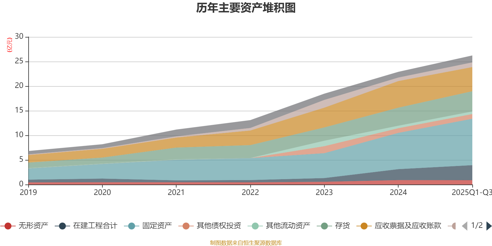 资产重大变化方面,截至2025年三季度末,公司应收票据及应收账款较上年末减少9.43%,占公司总资产比重下降4.94个百分点;固定资产较上年末增加27.9%,占公司总资产比重上升3.76个百分点;在建工程合计较上年末增加37.19%,占公司总资产比重上升1.92个百分点;预付款项较上年末增加112.21%,占公司总资产比重上升0.62个百分点。