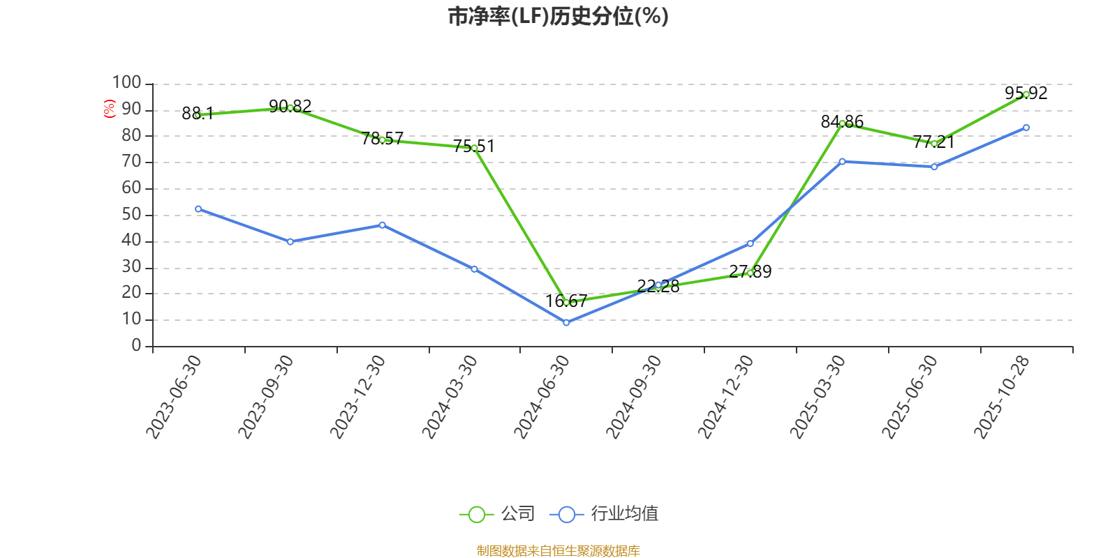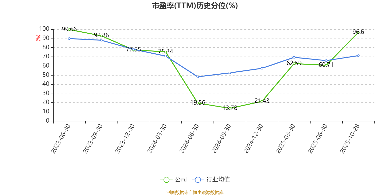 市盈率、市净率为负时,不显示当期分位数,会导致折线图中断。