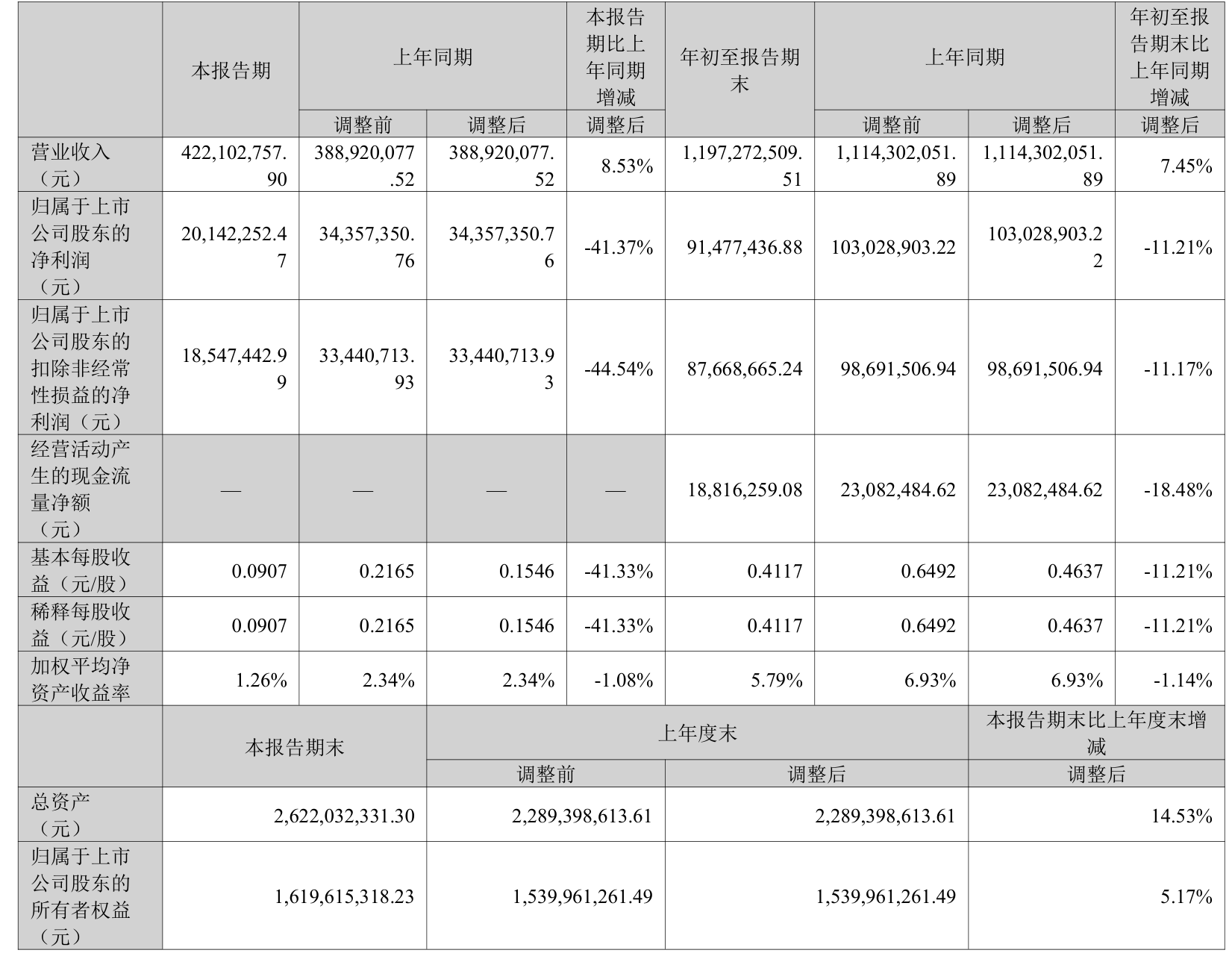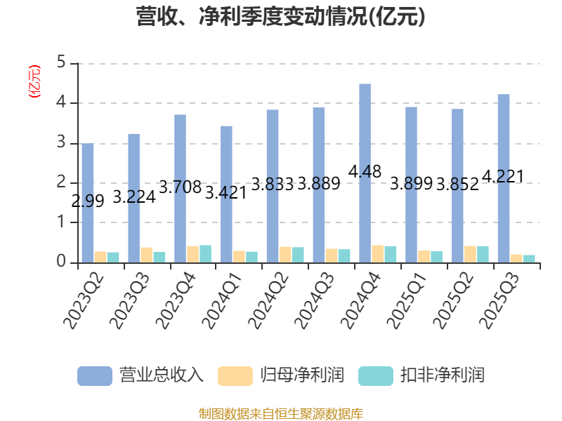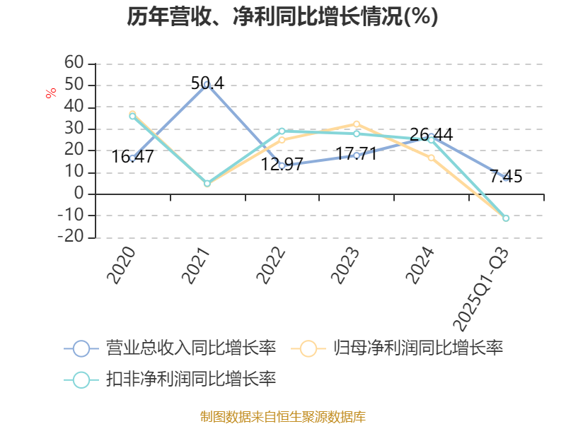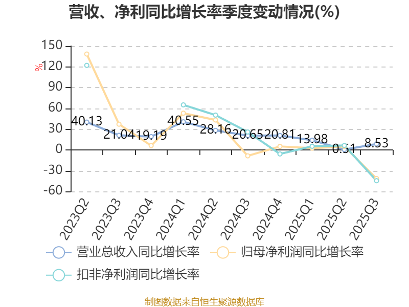 负债重大变化方面,截至2025年三季度末,公司短期借款较上年末增加79.73%,占公司总资产比重上升7.61个百分点;应付票据及应付账款较上年末增加4.97%,占公司总资产比重下降1.17个百分点;长期递延收益较上年末减少11.23%,占公司总资产比重下降0.49个百分点;应付职工薪酬较上年末减少10.62%,占公司总资产比重下降0.32个百分点。