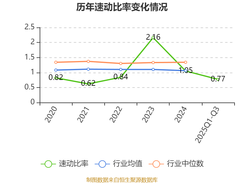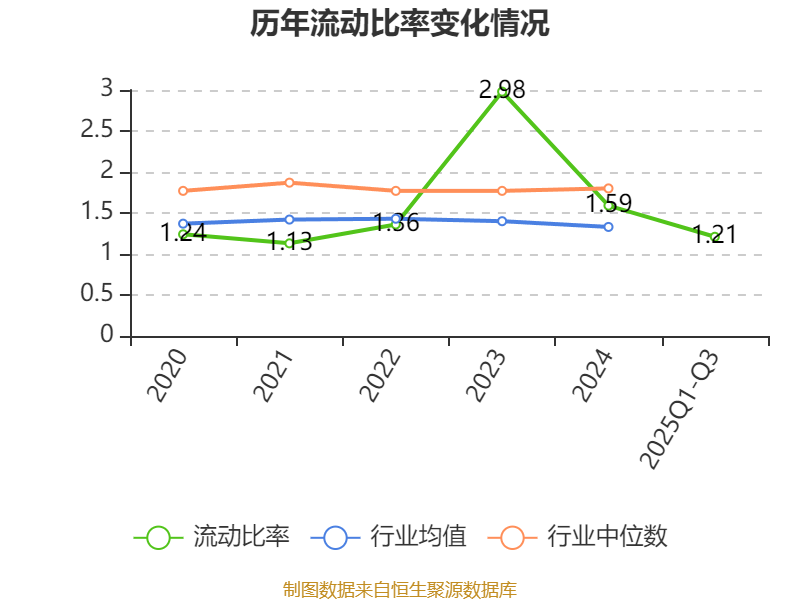 2025年前三季度,公司流动比率为1.21,速动比率为0.77。