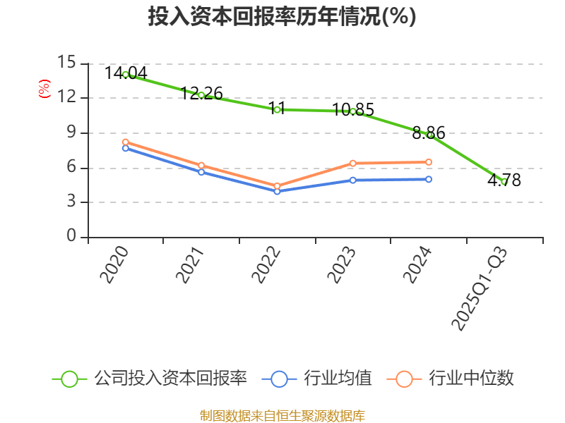 盈利能力方面, 2025年前三季度公司加权平均净资产收益率为5.79%,同比下降1.14个百分点。公司2025年前三季度投入资本回报率为4.78%,较上年同期下降1.78个百分点。