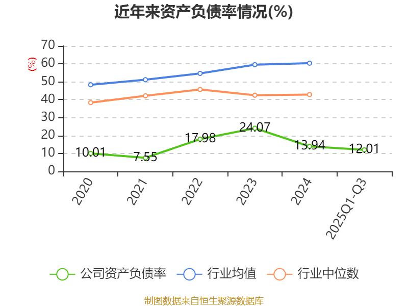 2025年前三季度,公司流动比率为6.82,速动比率为5.77。