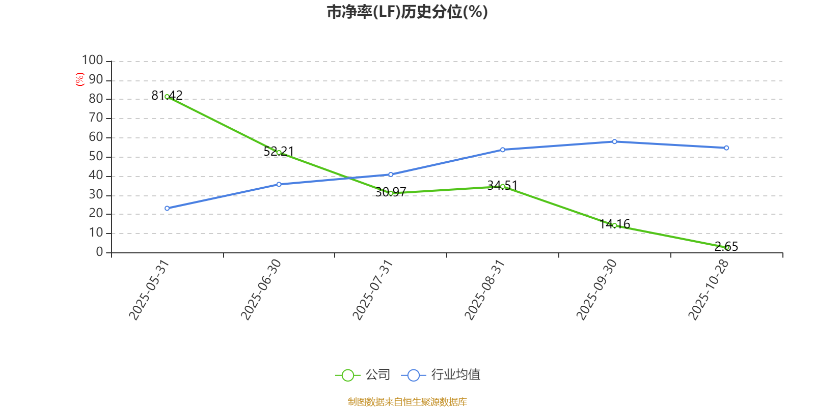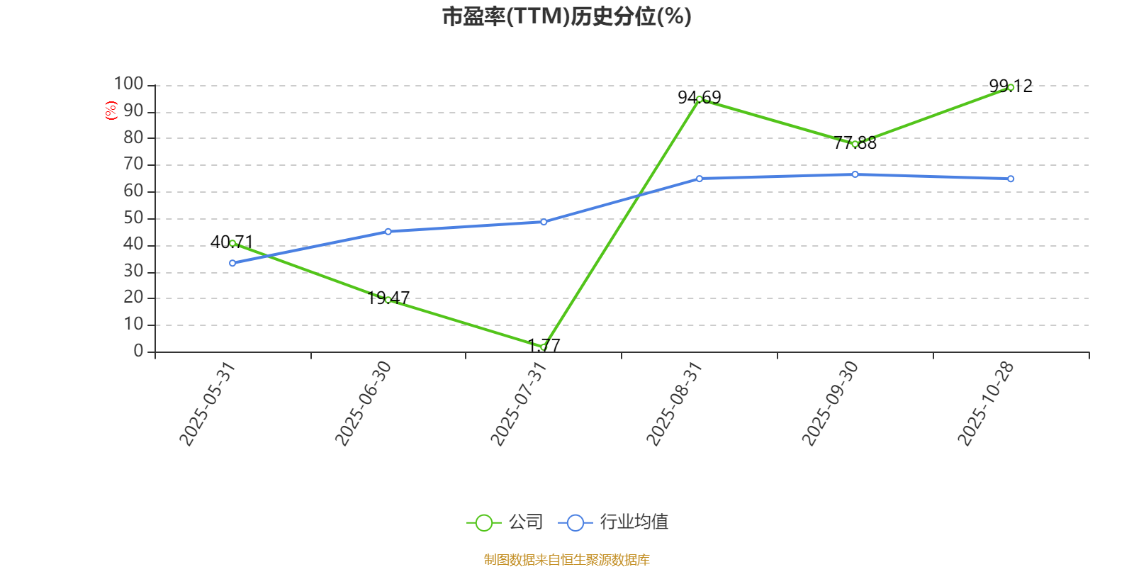 市盈率、市净率为负时,不显示当期分位数,会导致折线图中断。