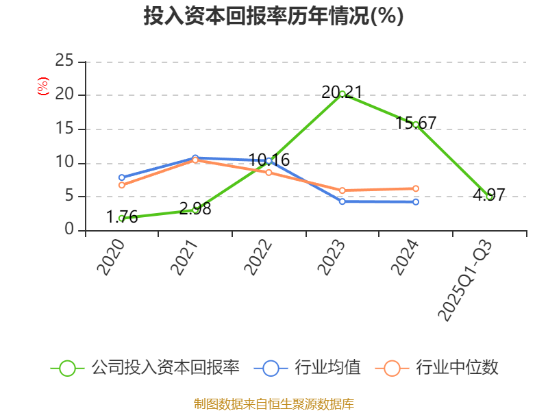 盈利能力方面, 2025年前三季度公司加权平均净资产收益率为5.56%,同比下降9.78个百分点。公司2025年前三季度投入资本回报率为4.97%,较上年同期下降19.73个百分点。