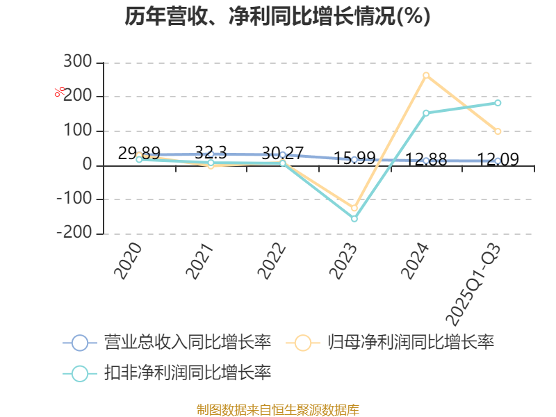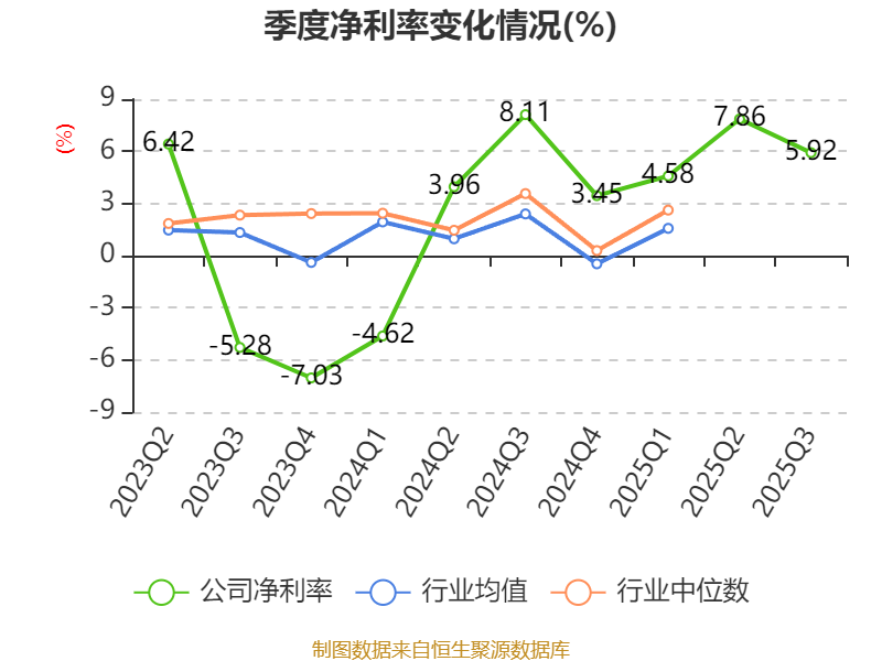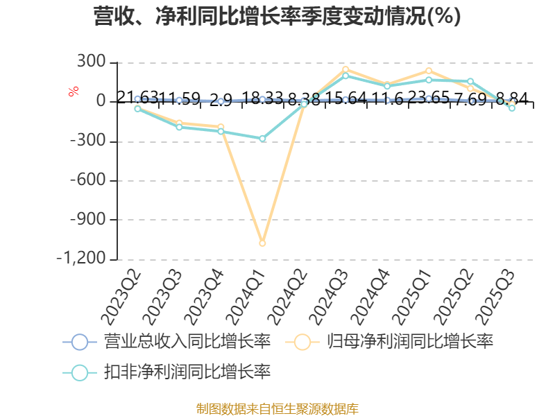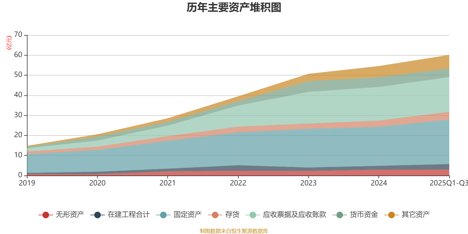 资产重大变化方面,截至2025年三季度末,公司应收票据及应收账款较上年末增加3.21%,占公司总资产比重下降1.96个百分点;货币资金较上年末减少11.8%,占公司总资产比重下降1.78个百分点;交易性金融资产合计较上年末减少81.75%,占公司总资产比重下降1.6个百分点;固定资产较上年末增加13.66%,占公司总资产比重上升1.11个百分点。