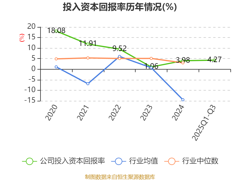 盈利能力方面, 2025年前三季度公司加权平均净资产收益率为6.49%,同比上升2.58个百分点。公司2025年前三季度投入资本回报率为4.27%,较上年同期上升1.38个百分点。