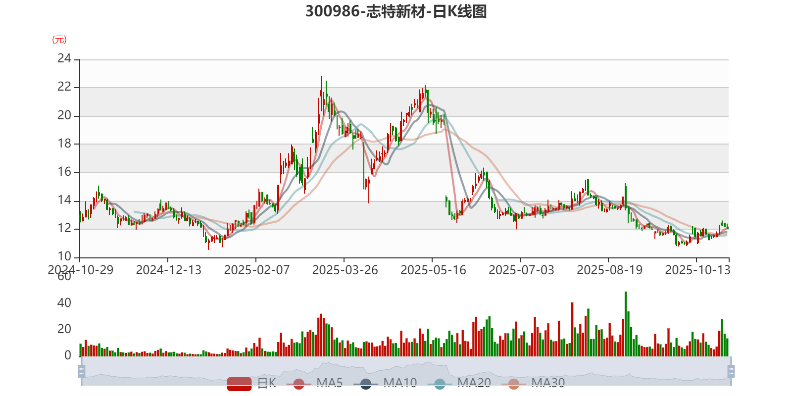 中证智能财讯志特新材(300986)10月29日披露2025年第三季度报告。前三季度公司实现营业总收入20.23亿元,同比增长12.09%;归母净利润1.18亿元,同比增长98.65%;扣非净利润9345.46万元,同比增长181.98%;经营活动产生的现金流量净额为1.39亿元,同比增长7907.42%;报告期内,志特新材基本每股收益为0.3219元,加权平均净资产收益率为6.49%。