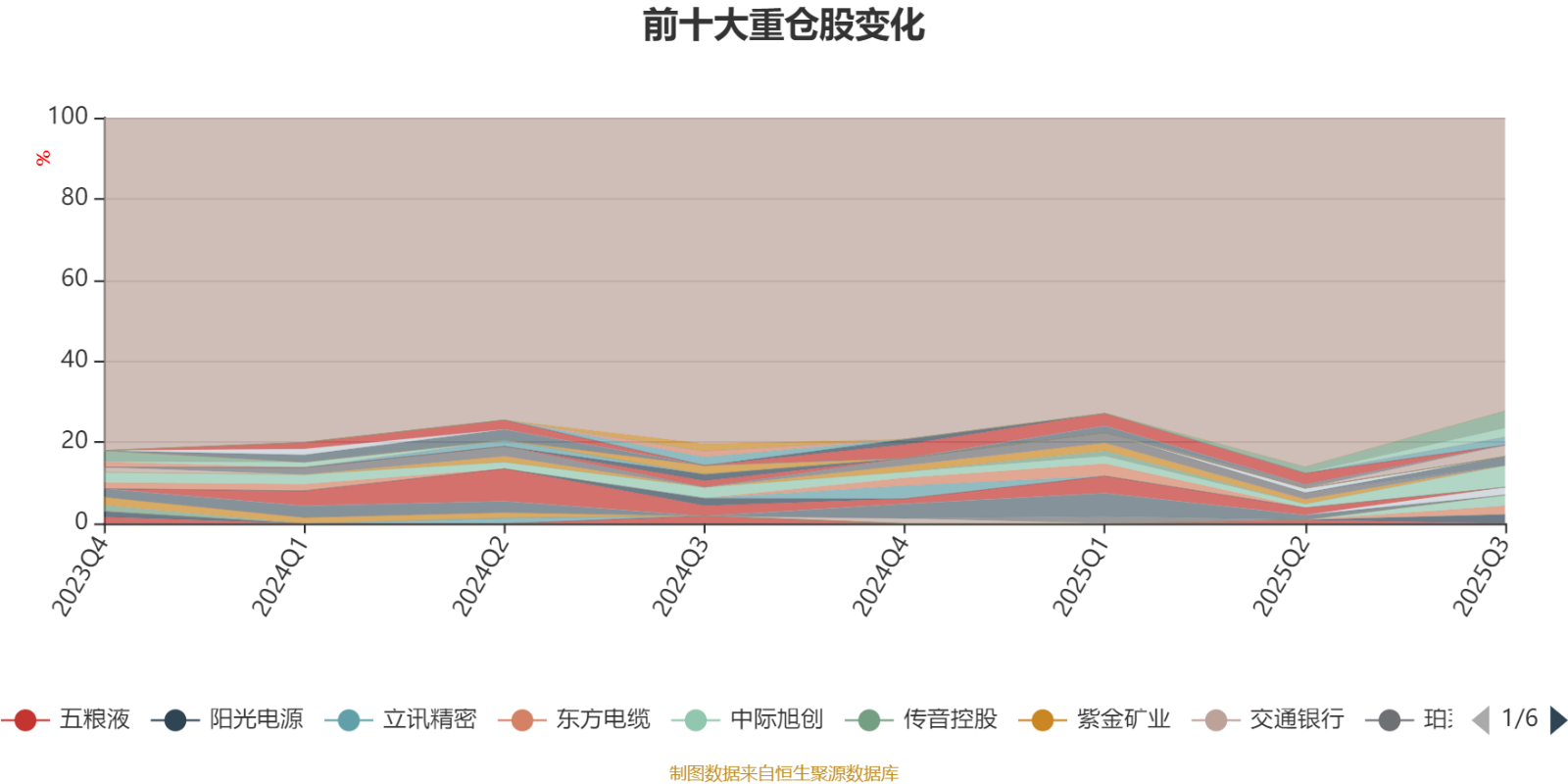 截至2025年三季度末,基金十大重仓股分别是宁德时代、新易盛、海光信息、中际旭创、寒武纪、拓荆科技、阳光电源、东方电缆、天孚通信、中航沈飞。