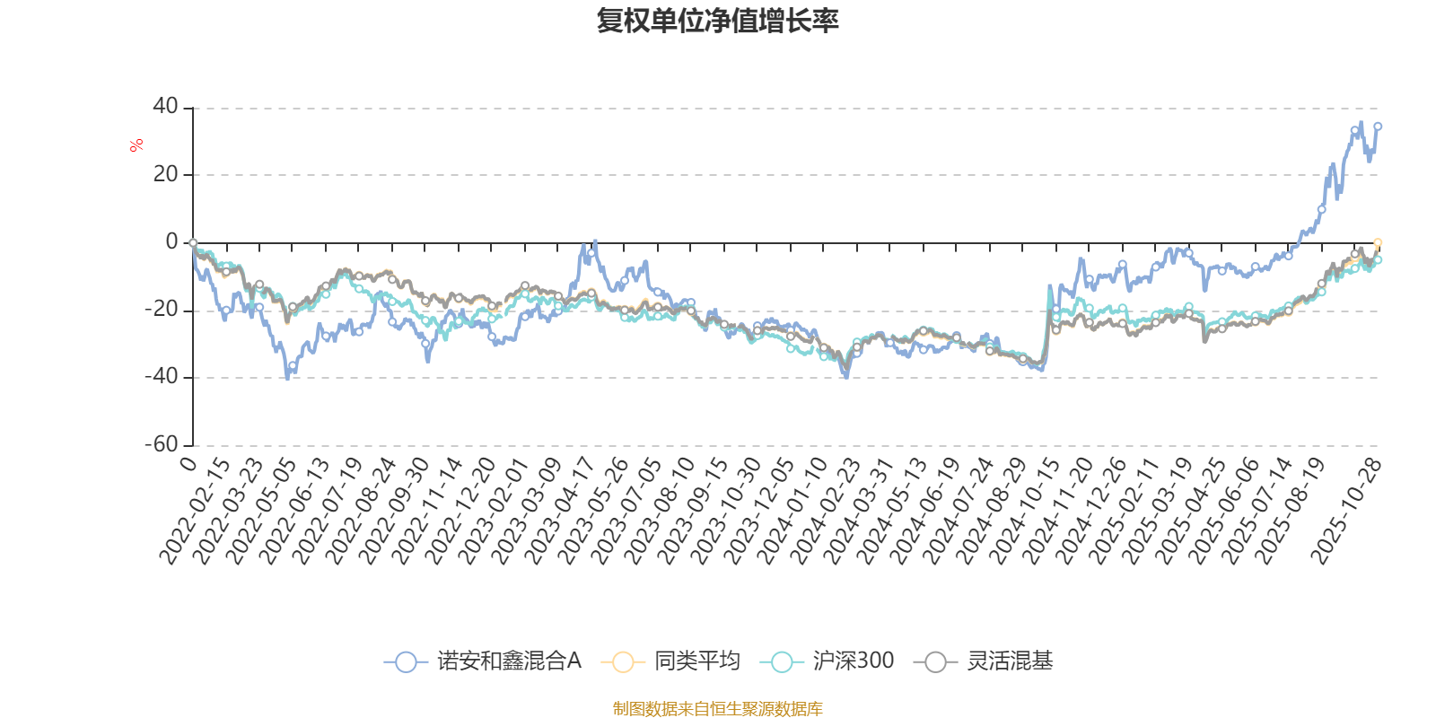 截至10月28日,诺安和鑫混合A近三个月复权单位净值增长率为31.32%,位于同类可比基金158/1287;近半年复权单位净值增长率为46.80%,位于同类可比基金188/1287;近一年复权单位净值增长率为56.84%,位于同类可比基金108/1287;近三年复权单位净值增长率为76.63%,位于同类可比基金53/1286。